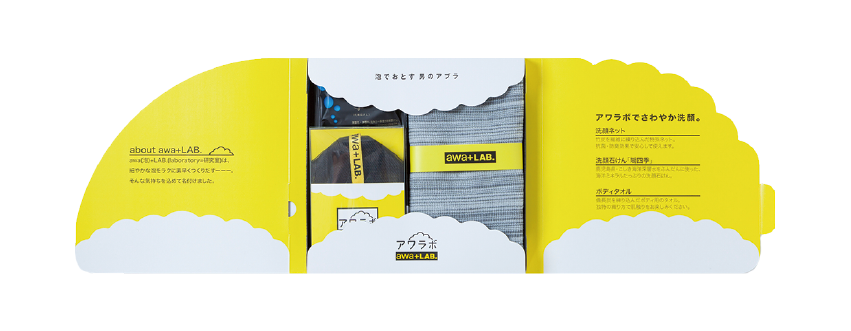浴室や洗面所で利用するものだから、水分や湿気で衛生的でなくなるのは困りもの。アワラボはフックなどに引っ掛けて干せるよう、「安心の黄色いテープ」を装着。安心して使うことができます。
